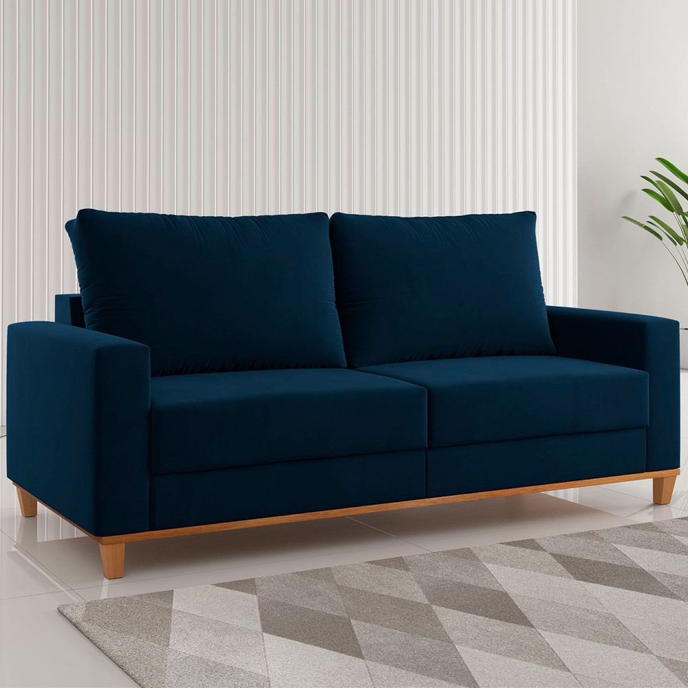 O(a) Sofá 2 Lugares Gilbran Veludo Azul - Vian é produzido em MDP na escala de brilho Semi-Brilho, e possui um grau de dificuldade de montagem: Médio.
