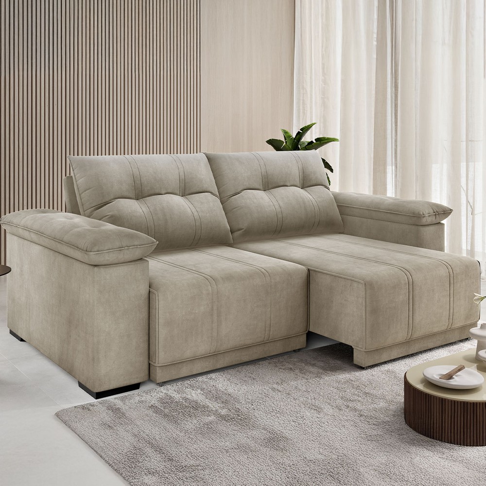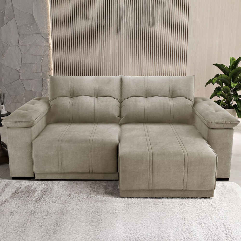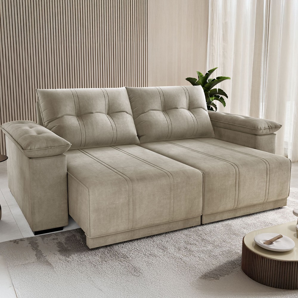 Sofá 3 Lugares Ferraro Retrátil e Reclinável Veludo Perola - Vian