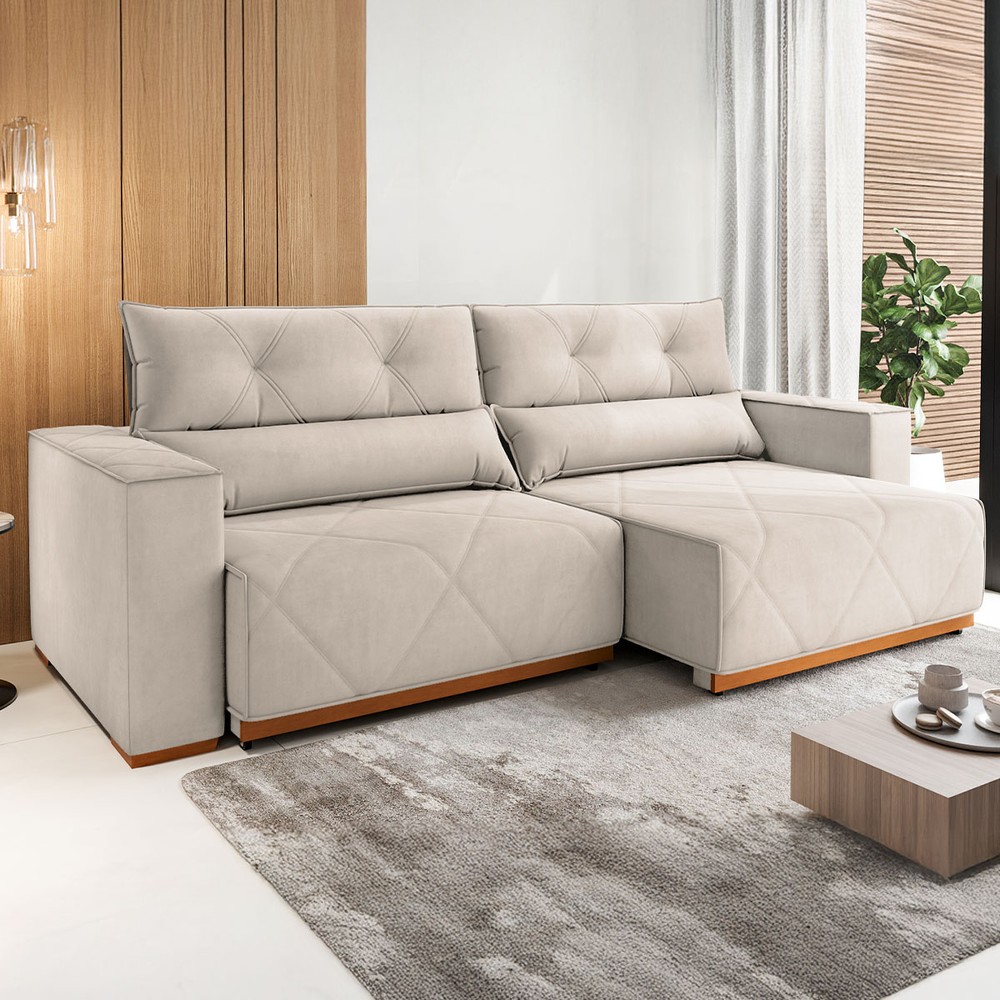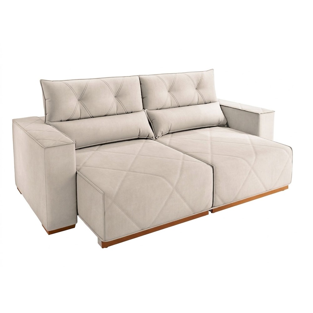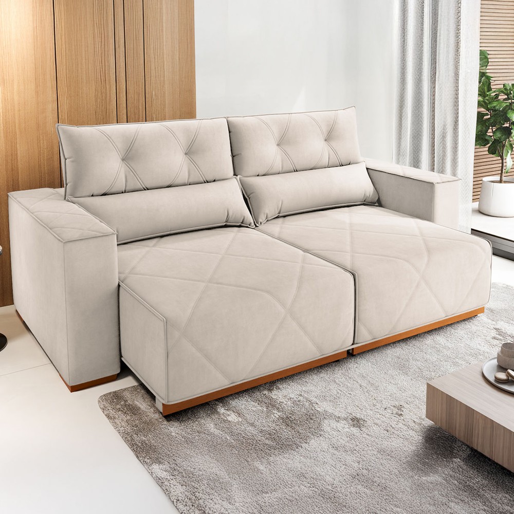 Sofá 3 Lugares Luxor Retrátil e Reclinável Veludo Marfim - Vian