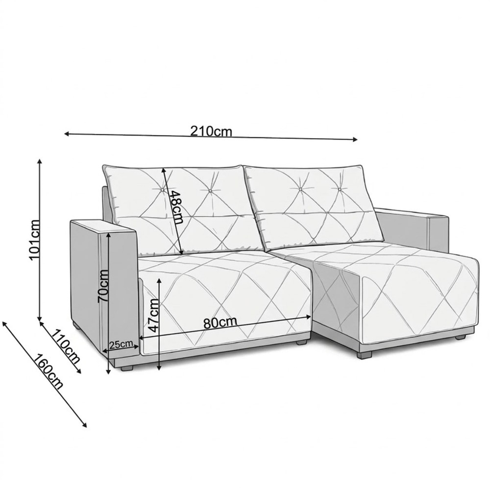 Medidas do Sofá Aberto (A x L x P): A:101 x L:210 x P:160cm