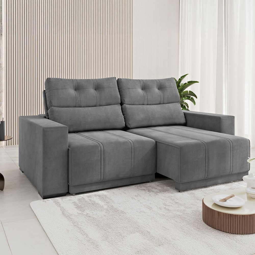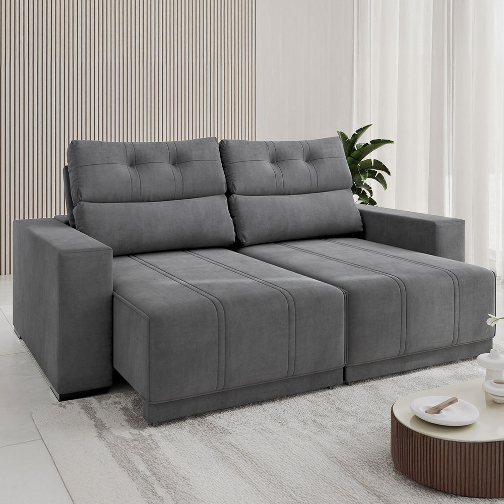 Sofá 3 Lugares Perfecto Veludo Retrátil e Reclinável Grafite - Vian