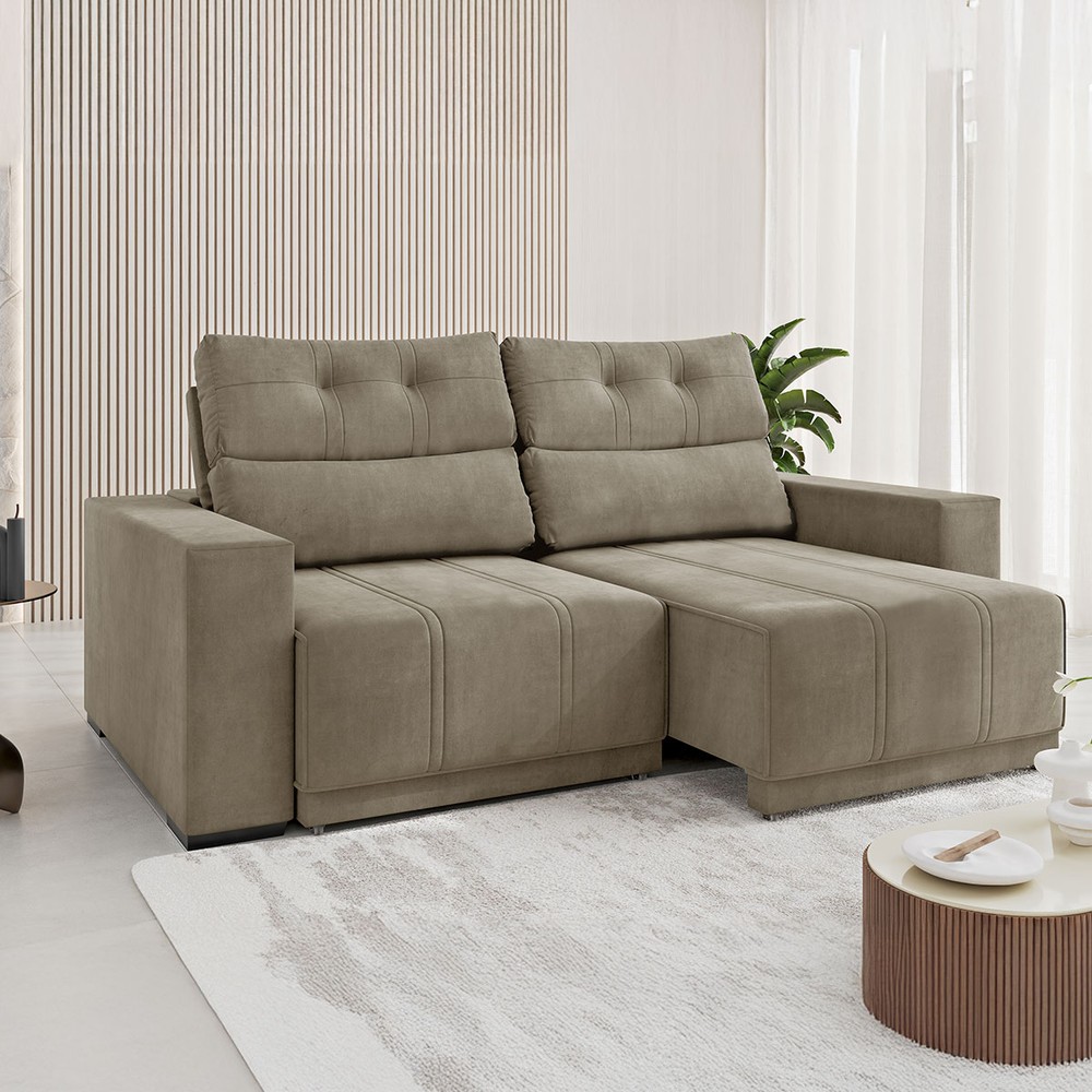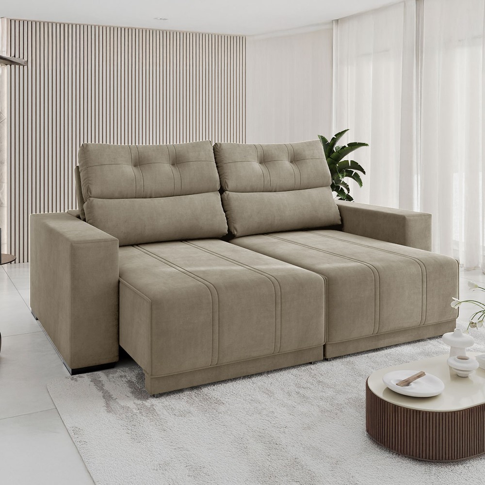 Sofá 3 Lugares Perfecto Veludo Retrátil e Reclinável Perola - Vian