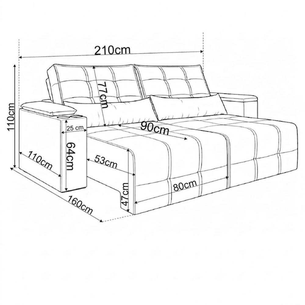 Medidas do Sofá Aberto (A x L x P): A:110 x L:210 x P:160cm