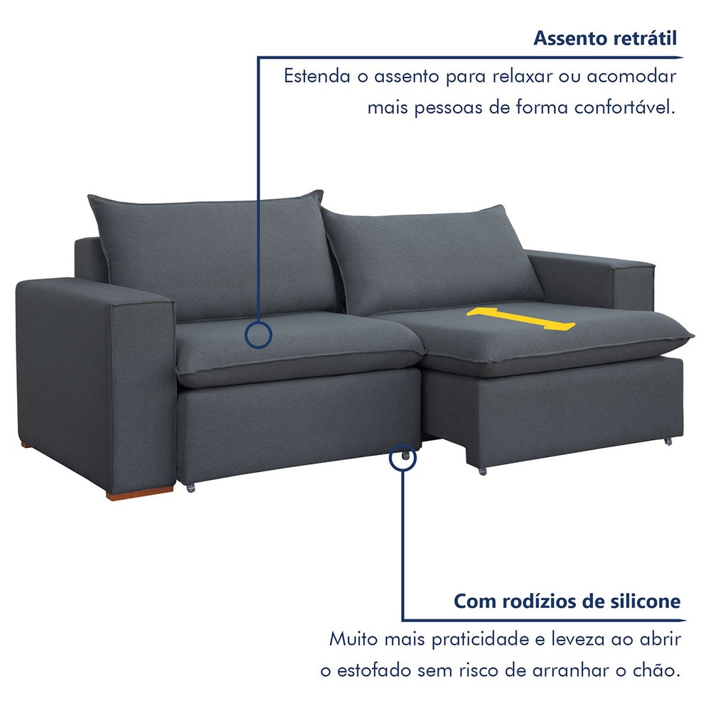 O(a) Sofá 4 Lugares Barcelona Retrátil Veludo/Cinza - Celflex é produzido em Eucalipto na escala de brilho Não Possui, e possui um grau de dificuldade de montagem: Médio.