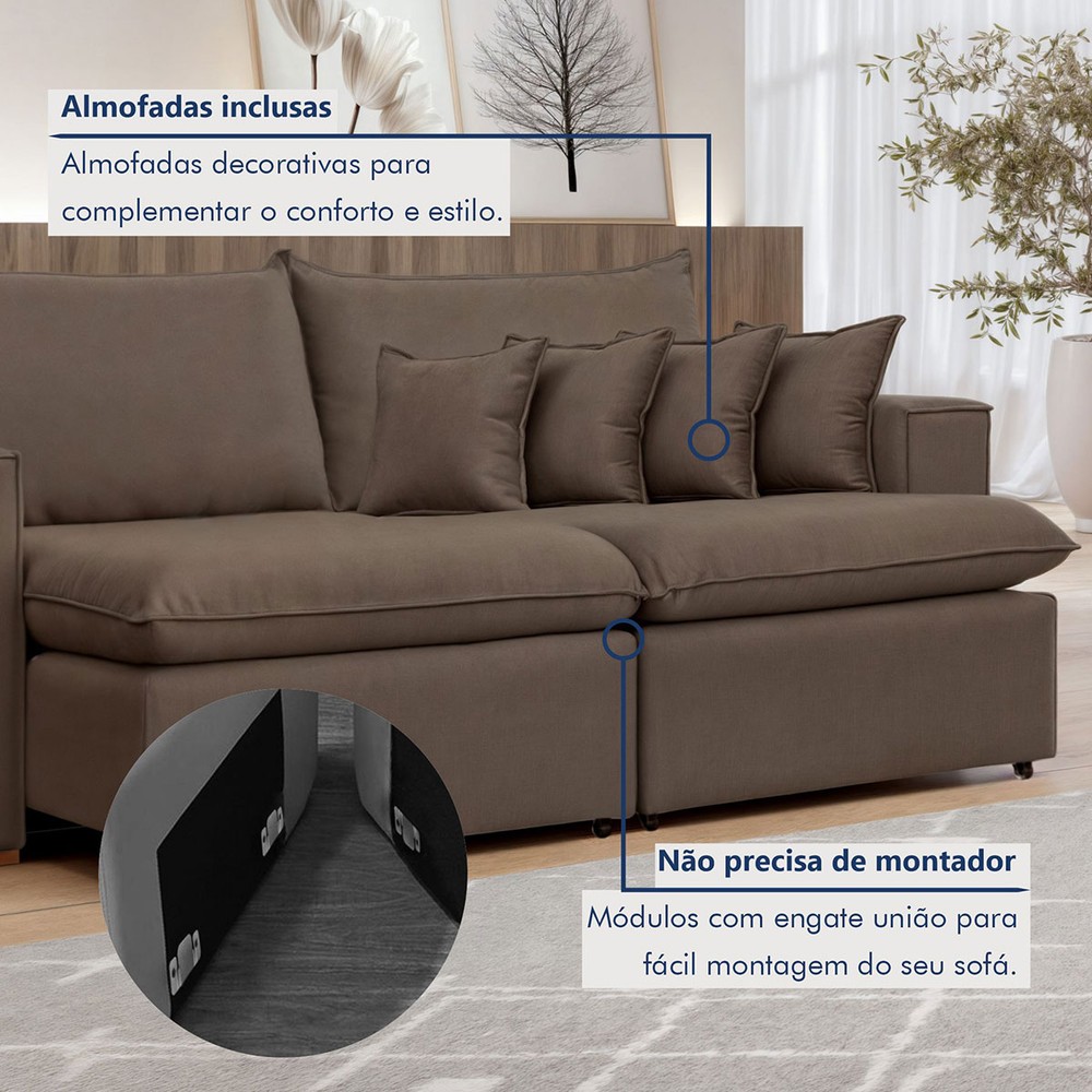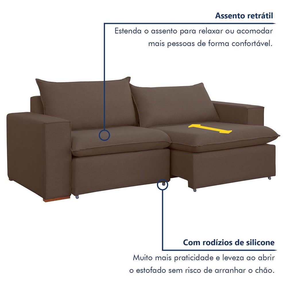O(a) Sofá 4 Lugares Barcelona Retrátil Veludo/Marrom - Celflex é produzido em Eucalipto na escala de brilho Não Possui, e possui um grau de dificuldade de montagem: Médio.
