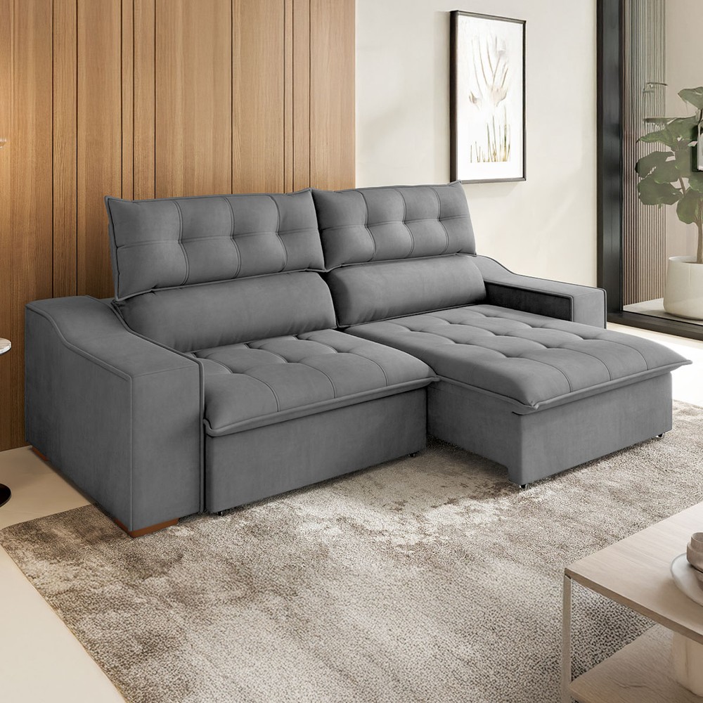 Sofá 4 Lugares Calvin Retrátil e Reclinável Veludo com Pillow Grafite - Vian