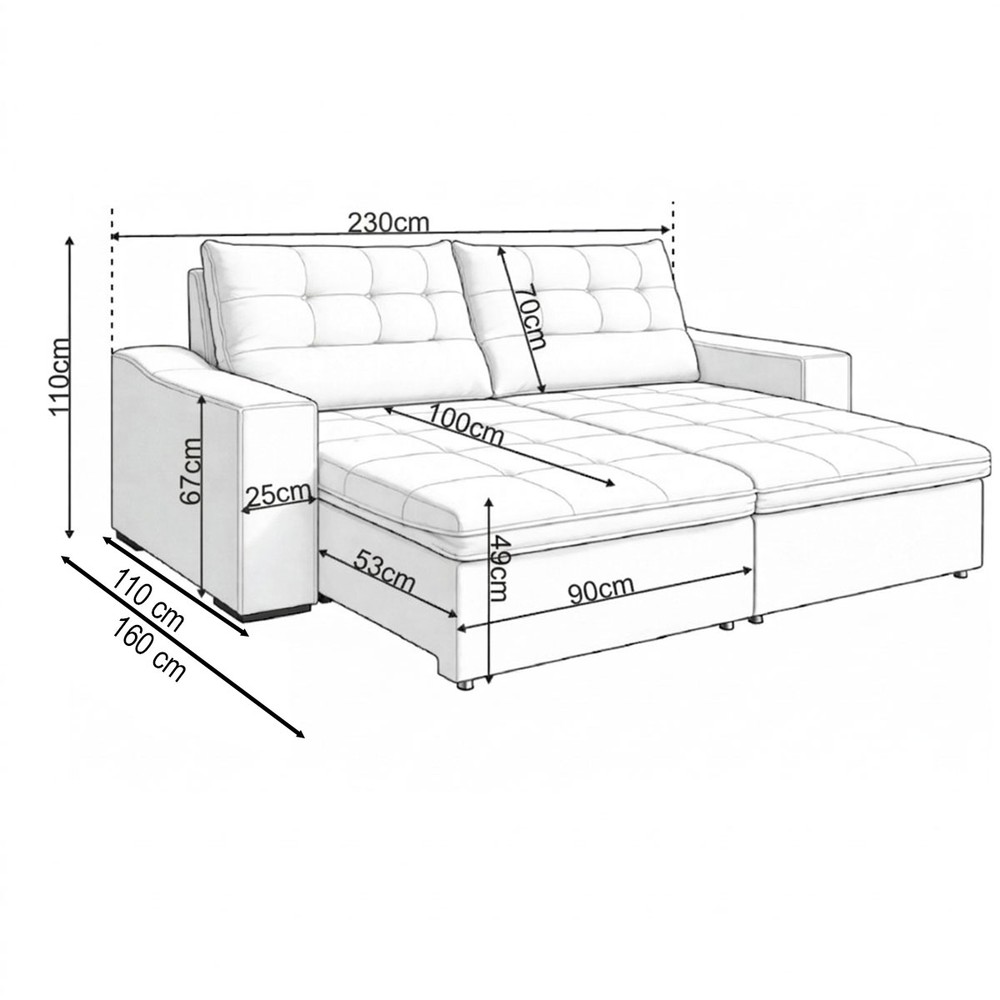 Medidas do Sofá Aberto (A x L x P): A:110 x L:230 x P:160cm