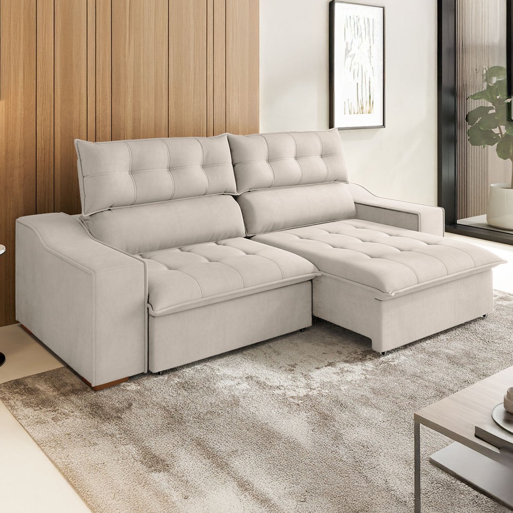 Sofá 4 Lugares Calvin Retrátil e Reclinável Veludo com Pillow Marfim - Vian