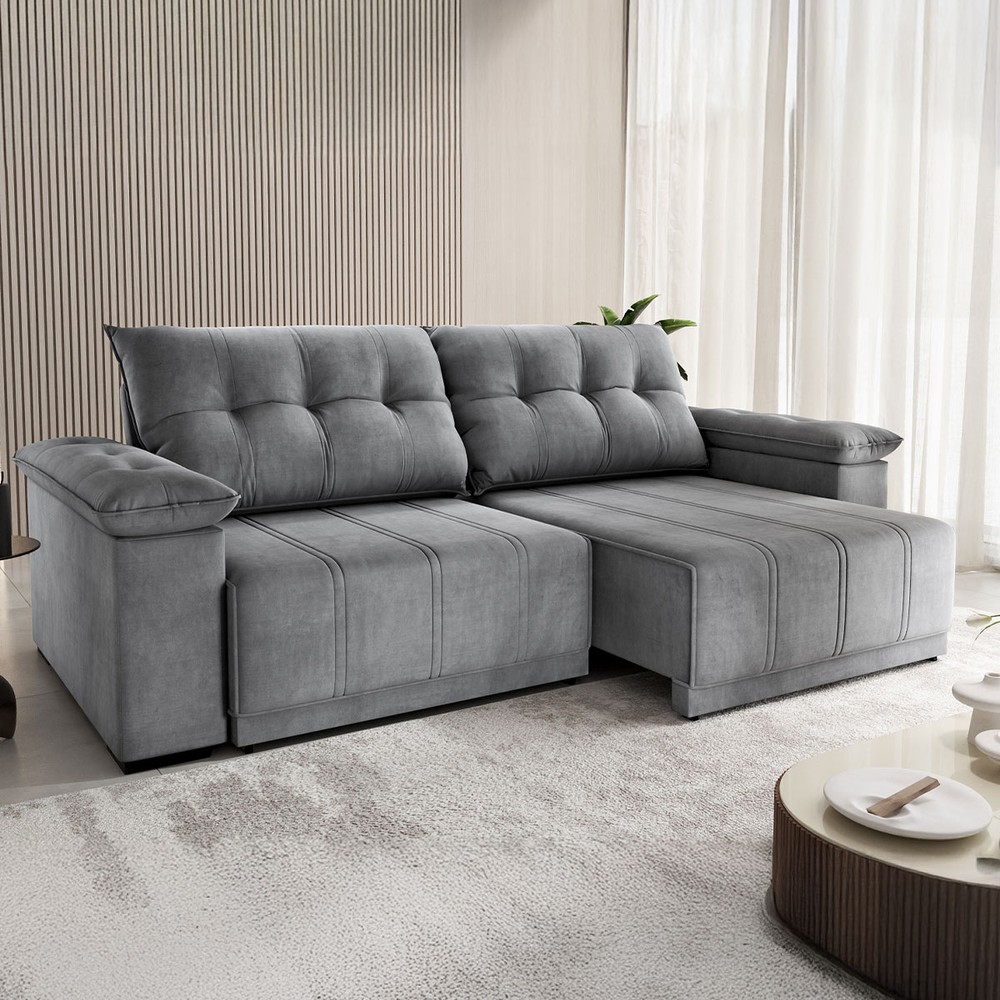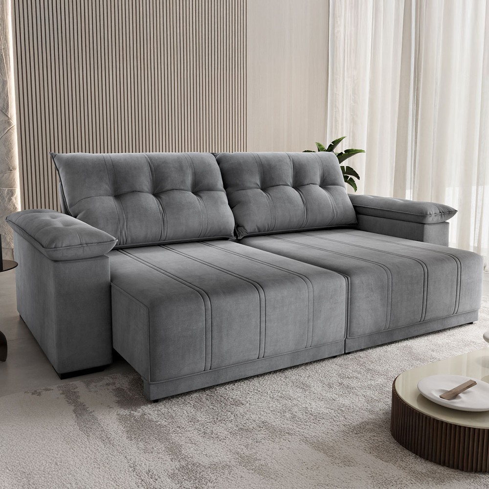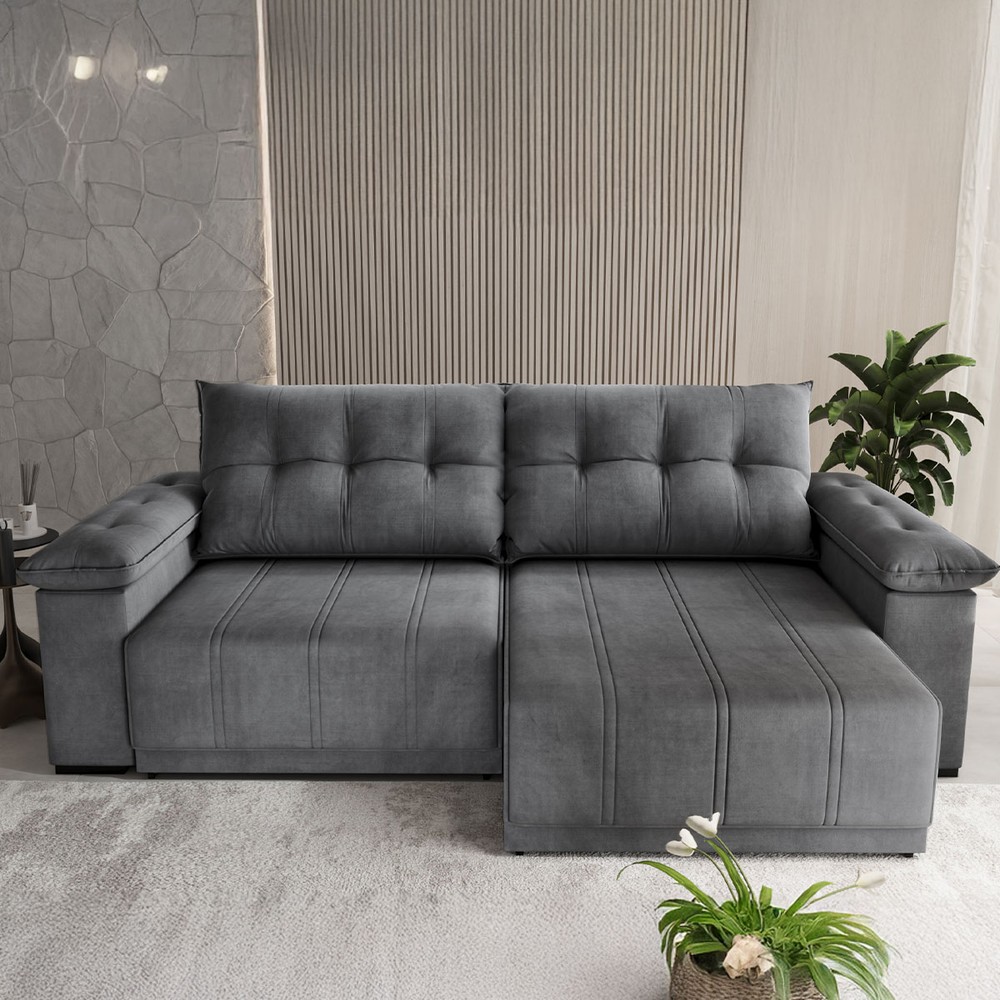 Sofá 4 Lugares Ferraro Retrátil e Reclinável Veludo Grafite - Vian