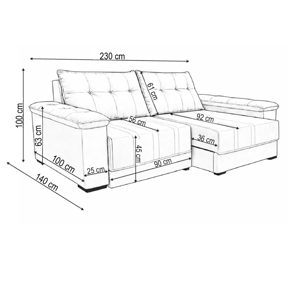Medidas do Sofá Aberto (A x L x P): A:100 x L:230 x P:140cm
