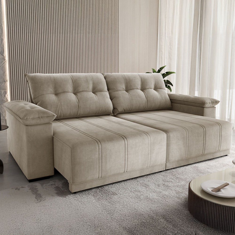 Sofá 4 Lugares Ferraro Retrátil e Reclinável Veludo Perola - Vian