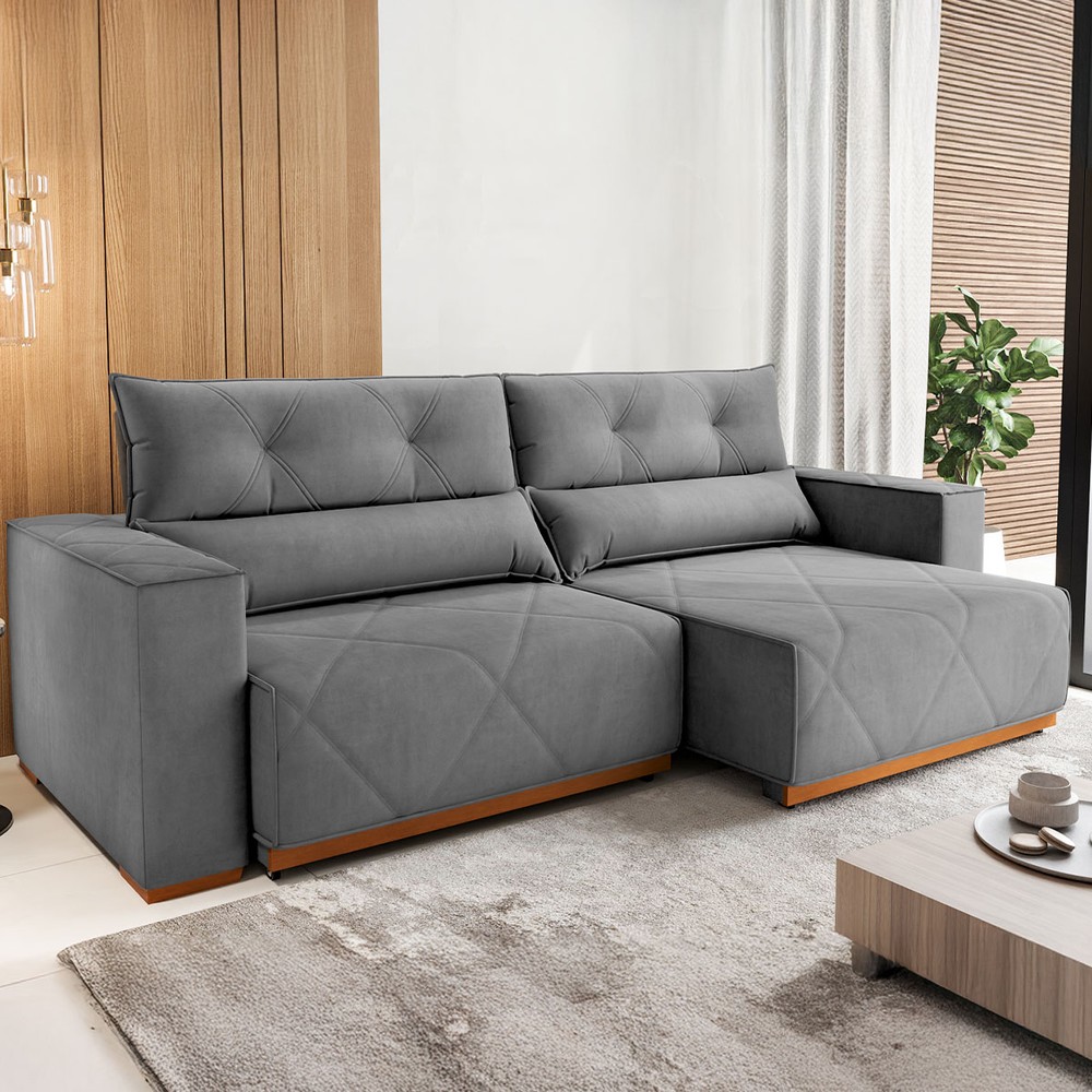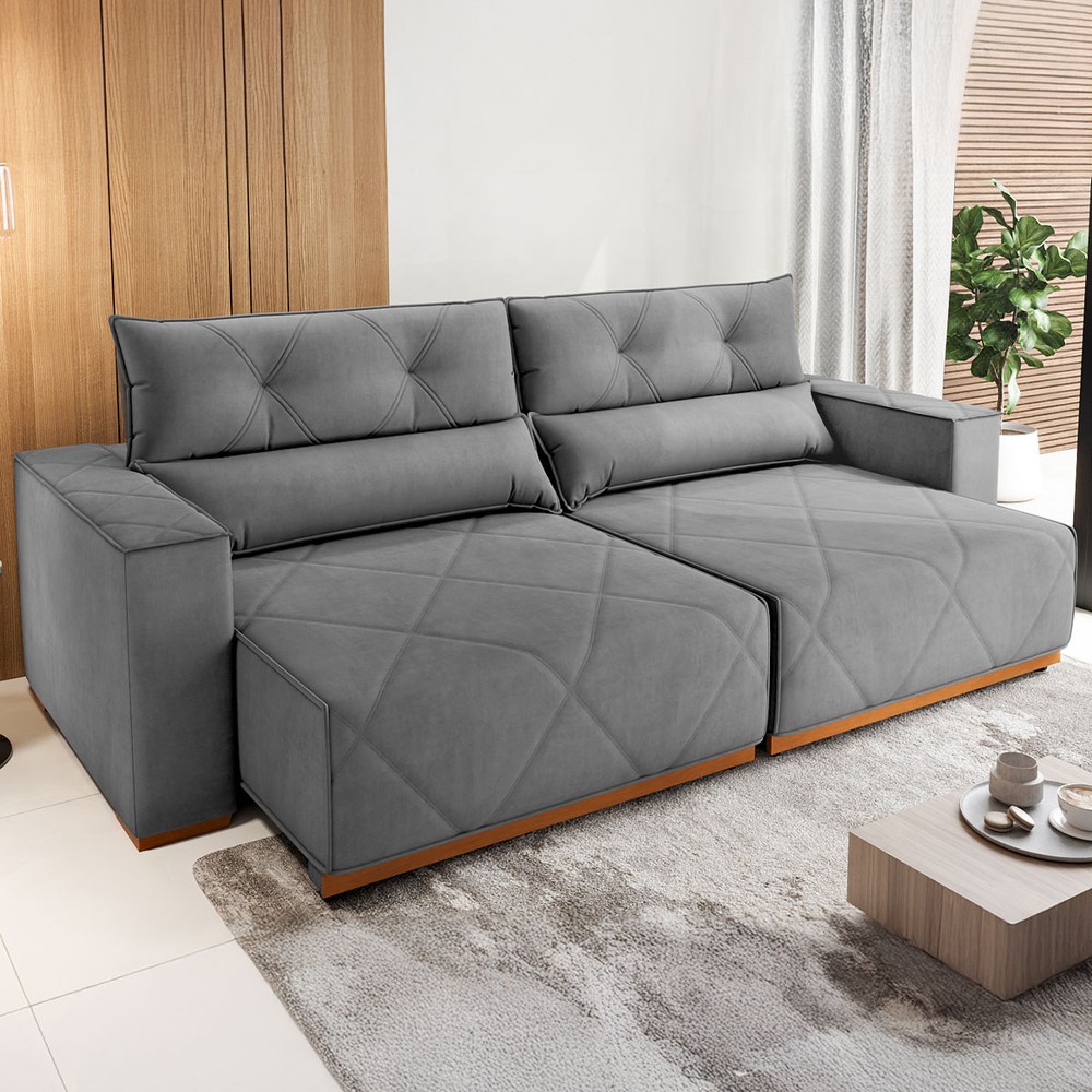 Sofá 4 Lugares Luxor Retrátil e Reclinável Veludo 37547 Grafite - Vian