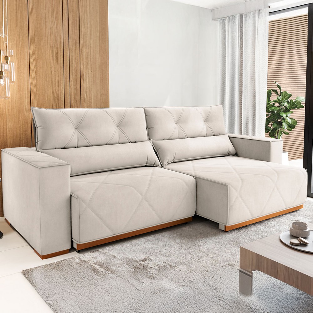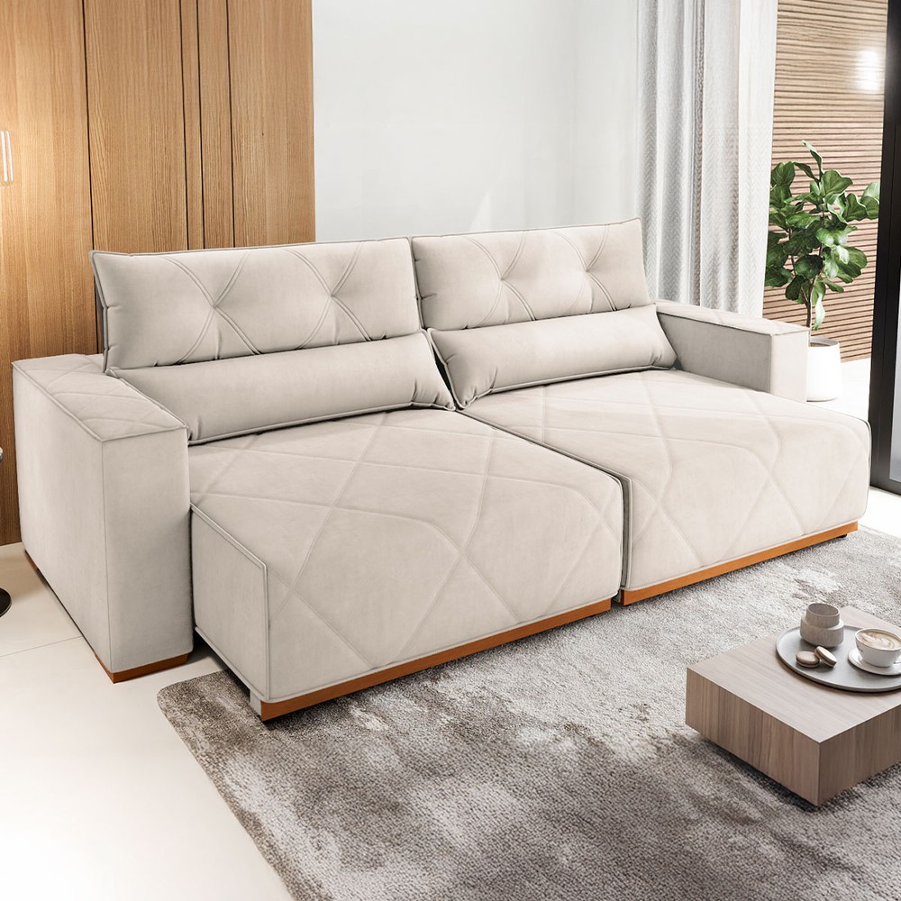 Sofá 4 Lugares Luxor Retrátil e Reclinável Veludo Marfim - Vian