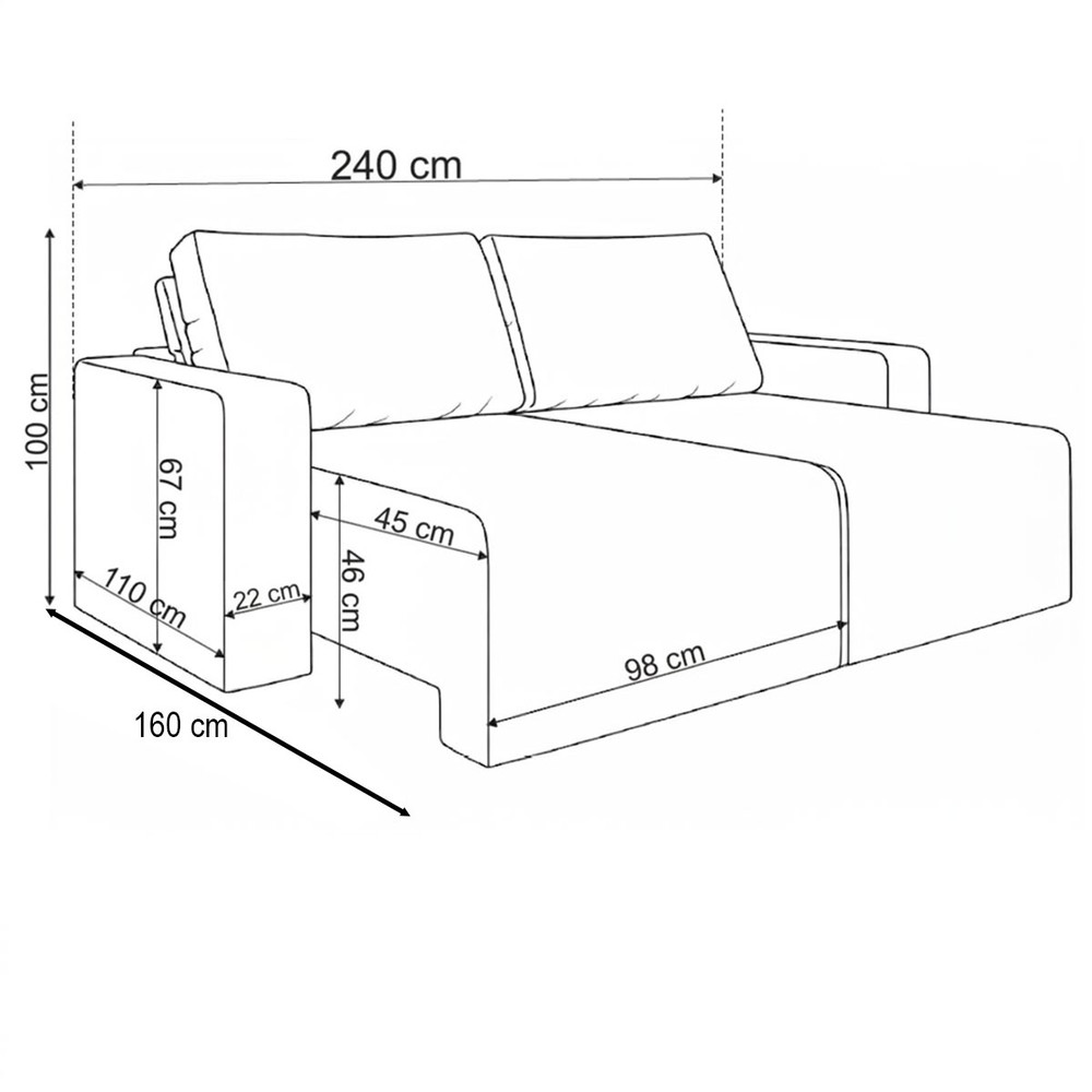 Medidas do Sofá Aberto (A x L x P): A:100 x L:240 x P:160cm