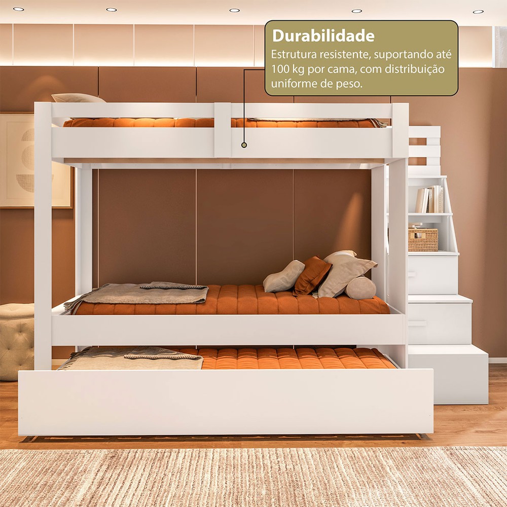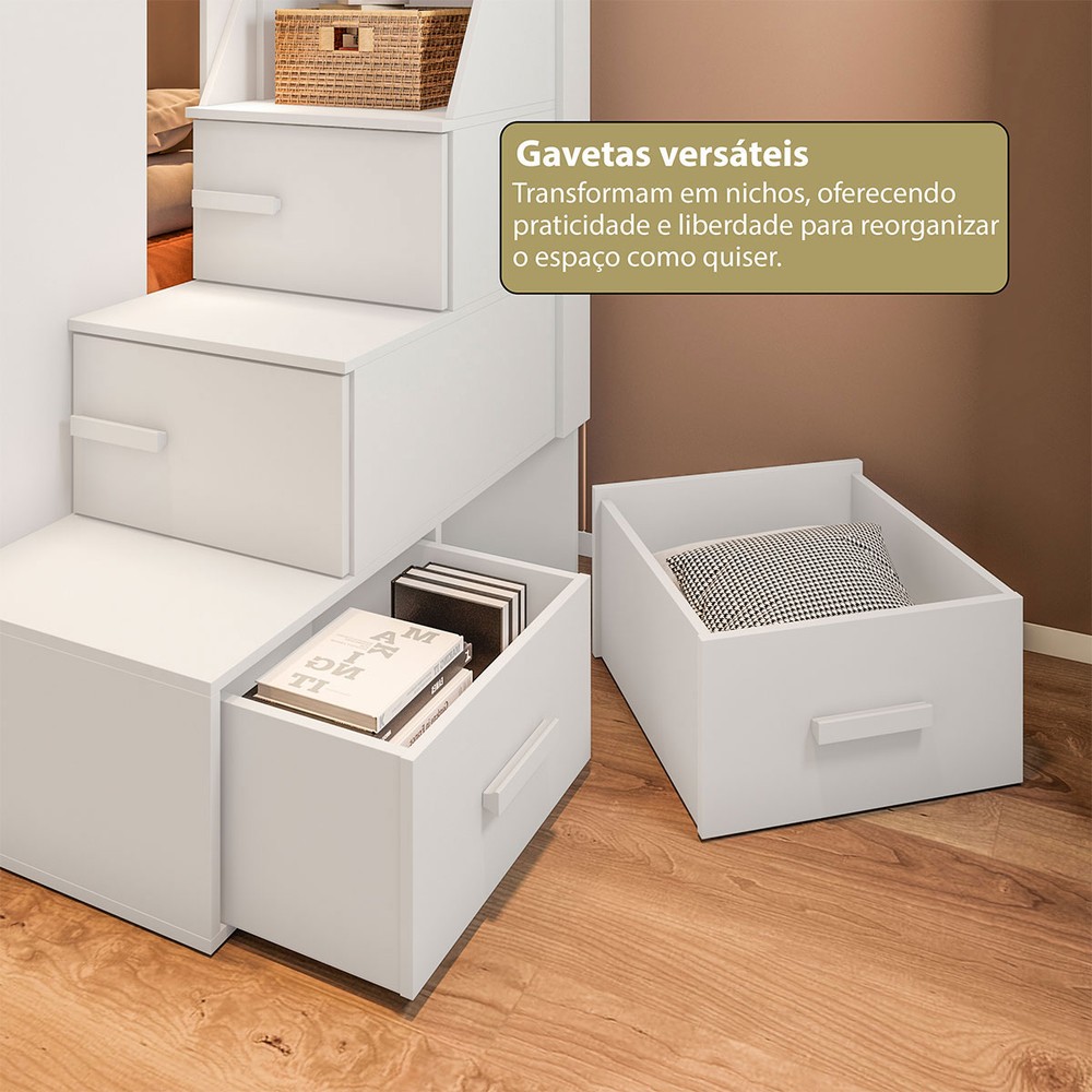 O(a) Treliche Luar 2 Portas 2 Nichos com Escada Branco - Pnr Móveis é produzido em MDP na escala de brilho Fosca com Textura, e possui um grau de dificuldade de montagem: Difícil.