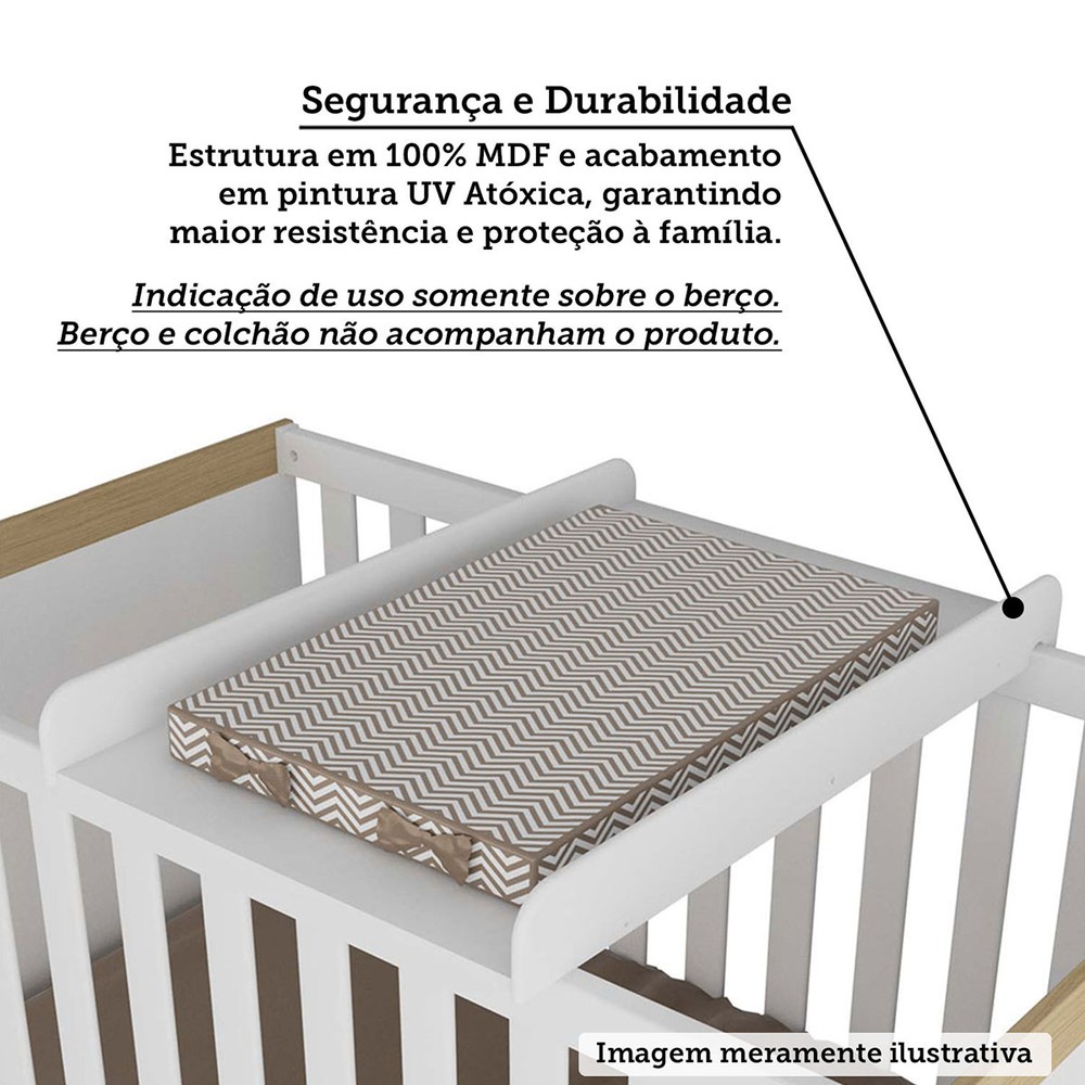Trocador de Fraldas para Berço Decor 100% Mdf Branco Brilho - Móveis Peroba